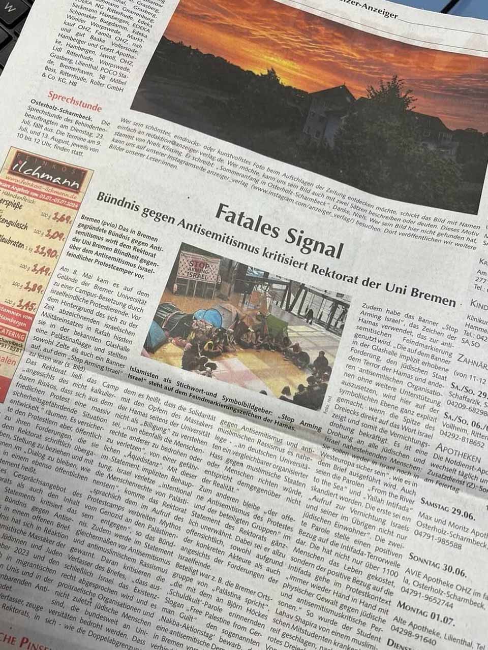 Mitte November haben wir zudem einen zweiten offenen Brief an das Rektorat der Uni Bremen geschrieben, da eine Antwort auf den ersten noch ausstand und weiterhin – über die vorlesungsfreie Zeit bis hin zur O-Woche – antisemitische Treffen und Veranstaltungen an der Bremer Universität abgehalten wurden. Im Zuge dessen kam es zu unserem zweiten Interview bei buten un binnen. Der Titel des Beitrags war: Bündnis fordert von Bremer Uni mehr Einsatz gegen Antisemitismus.